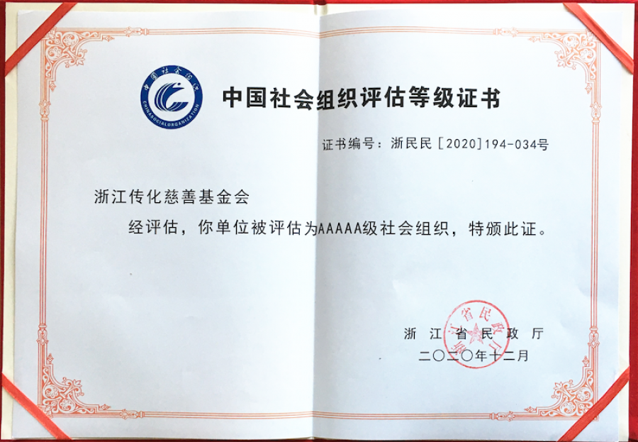 近日,浙江省民政廳公布了2020年度全省性社會組織評估結(jié)果,首次參評的傳化慈善基金會獲評5A級社會組織”稱號,這是社會組織評估的最高等級,也成為浙江省創(chuàng)辦時間最短即獲得5A等級的社會組織。