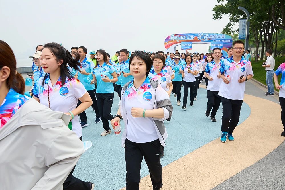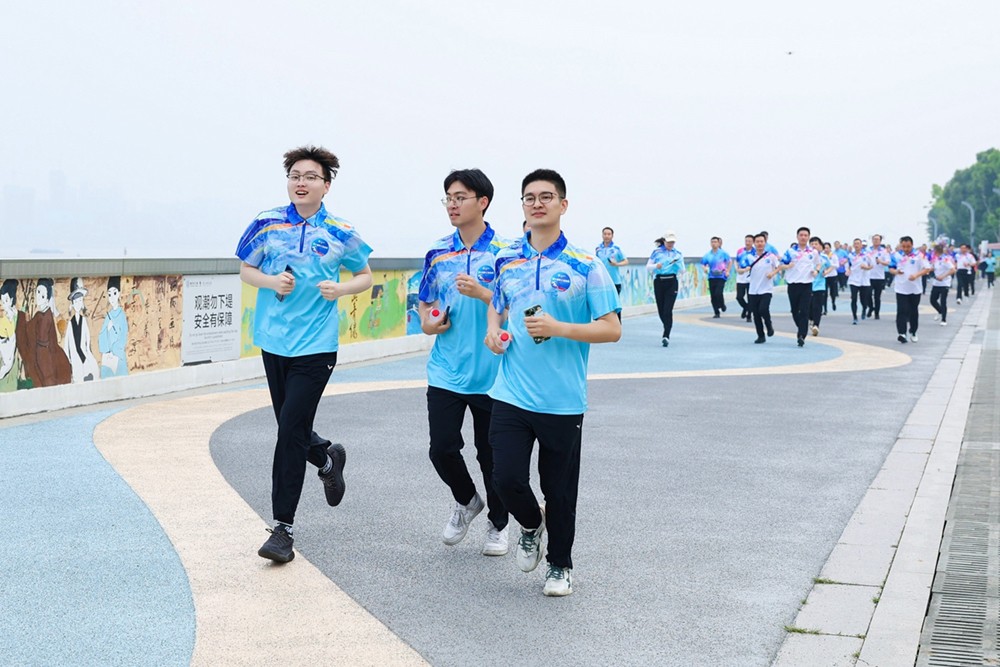 進入錢江世紀城公園,集團工會主席羊志堅宣布,“開幕式沿江跑正式開始!”